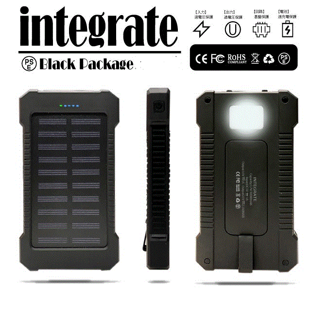 機器内では自動で必要アンペアを振り分けるインテリジェントコントロールシステム搭載!ソーラー モバイルバッテリー 大容量10000mAh PSE適合 防災グッズ iPhone Android USB充電 災害時でも安心のソーラー充電 モバイルバッテリー ソーラー モバイルバッテリー 大容量10000mAh PSE適合 iPhone Android PSE適合商品 大容量 モバイルバッテリー ソーラー充電器 生活防水仕様!数量限定 充電USBが2ヵ所!大容量10000mAh Integrateモバイルバッテリー!この時期お出かけやアウトドアにもピッタリです。