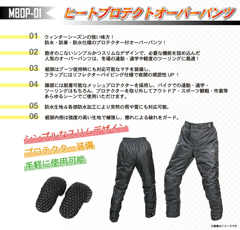 【在庫有】【送料無料】モトベース(MOTO BASE)秋冬モデル 防寒・防風・防水 ウインターパンツ バイク用 ヒートプロテクト オーバーパンツ/MBOP-01