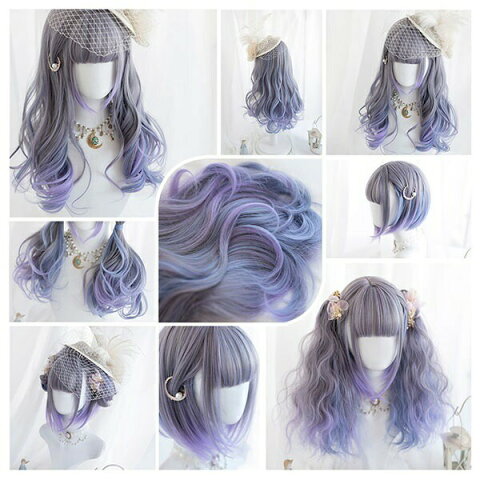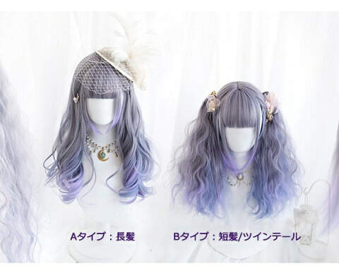 ウィッグ lolita メッシュ 長髪 短髪 ツインテール ロリータ風 原宿風 かつら 巻き毛 ぱっつん前髪 グラデーション パープル レディース コスプレウィッグ 可愛い ショート ロング 耐熱ウィッグ コスチューム dp031n1n1zo