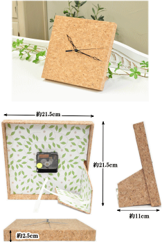 )天然コルク生地を使った手作り時計キットインテリア用として自分だけの時計を作ってみませんか。