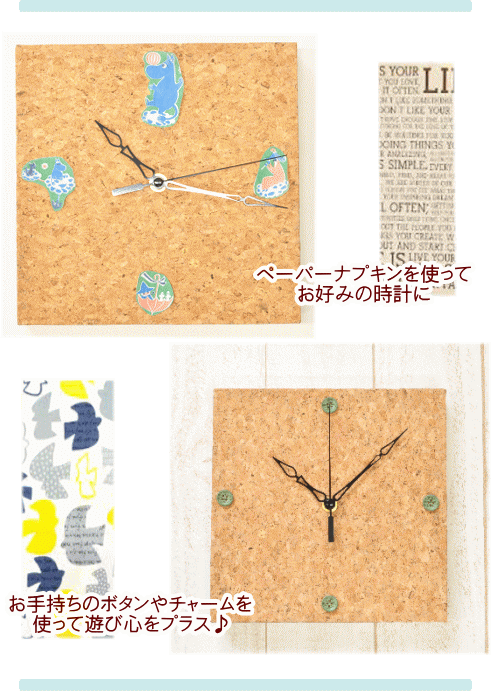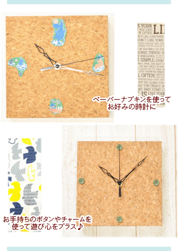 カルトナージュ コルクの生地を使った時計 キット レシピ付 《 コルク 時計 手芸 手作り キット カルトナージュ 夏休み 工作 》